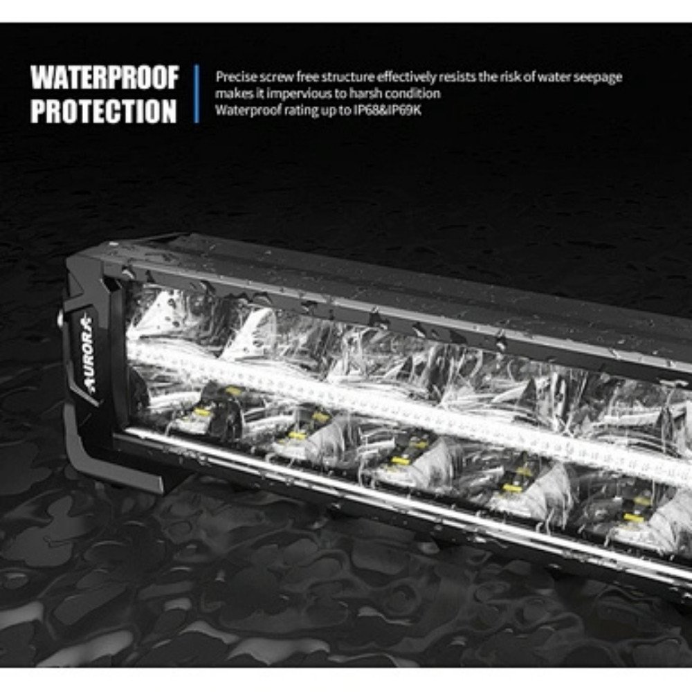 Built tough with Aurora Lighting’s proven quality, this 10″ LED light bar is designed to withstand vibration, mud, dust and moisture. For easy installation, it includes a complete wiring harness, allowing you to get up and running quickly with a clean, reliable setup.