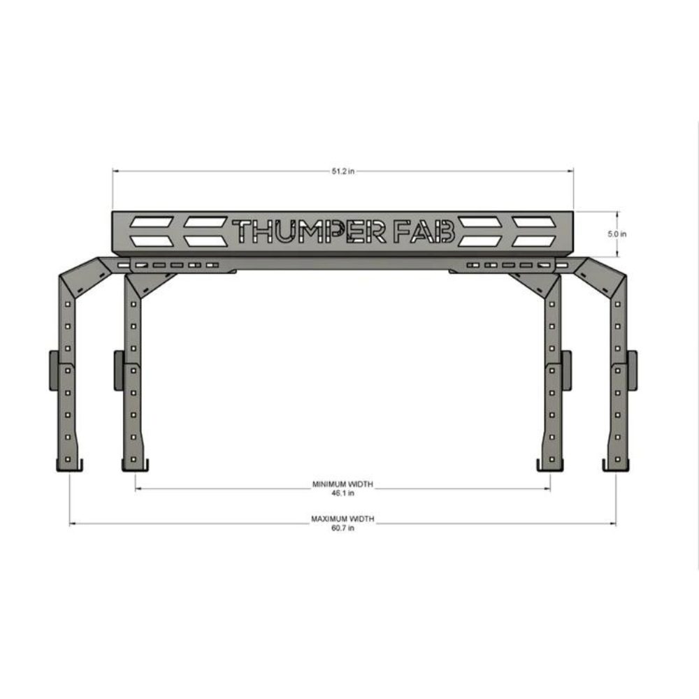 Maximise the versatility and storage capability of your side-by-side with the Thumper Fab Adjustable UTV Bed Rack. Designed for a wide range of UTV applications, this heavy-duty rack system allows you to securely carry tools, equipment, recovery gear and cargo while maintaining full use of your vehicle’s bed.