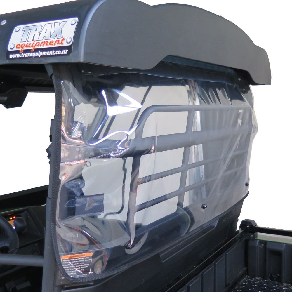 The Clear Back Panel (PVC) For Mule MX is made of heavy-duty PVC, and simple velcros to the roll bar to enclose the rear of the cab of your Kawasaki Mule Pro-MX Side by Side.