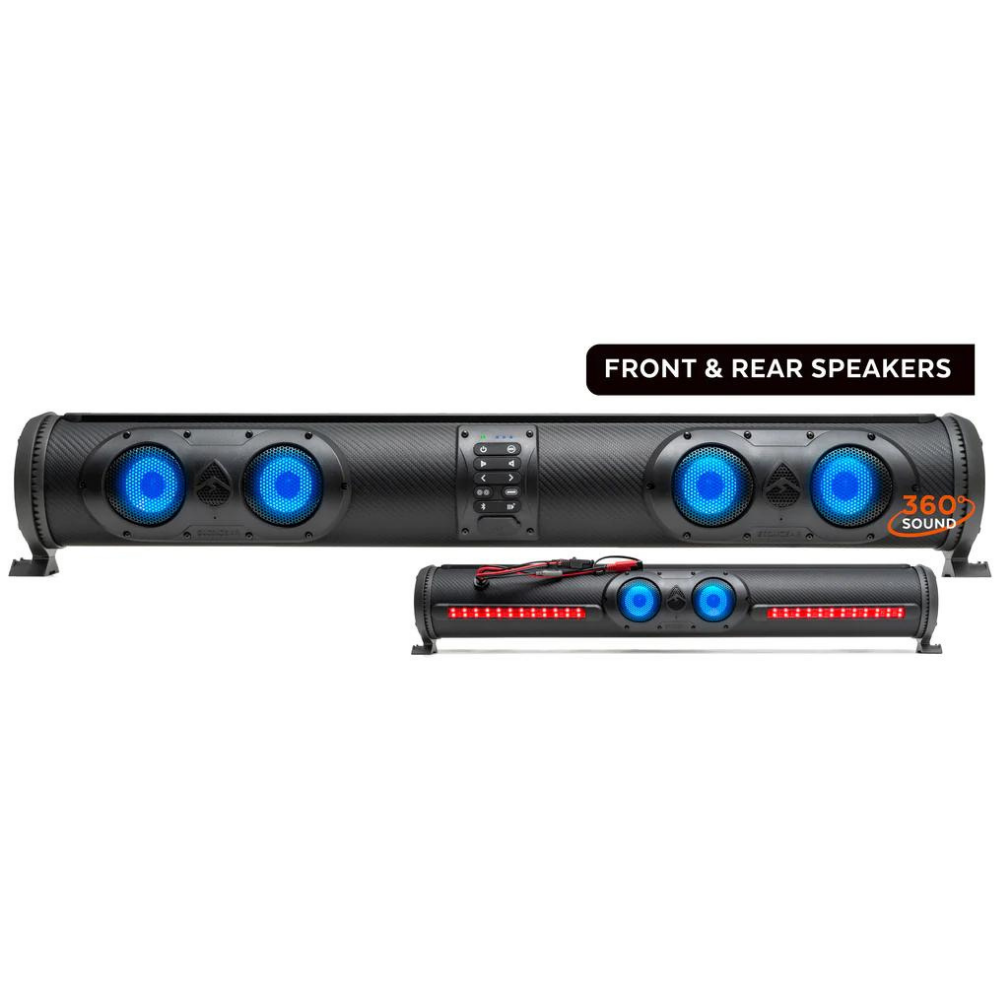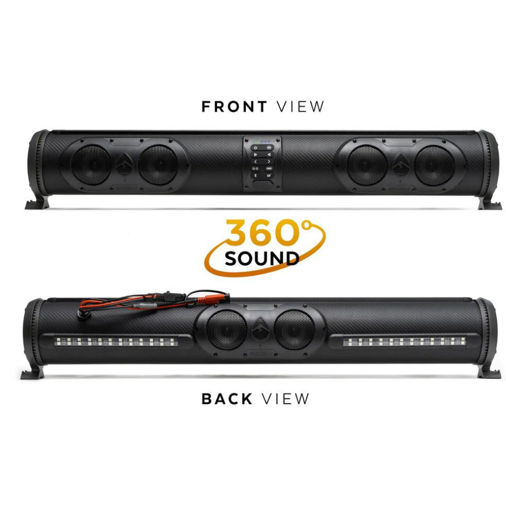 The new 812 mm (32″) SoundExtreme powersports sound bar with 360 degrees sound and LED lighting system is perfect for your ATV or UTV. 100% waterproof, dustproof, and dirtproof. 500 watts of power to 11 marine grade speakers provide a great listening experience. With ECOXGEAR’s EcoCast feature, connect up to 100 Sound Extremes at a time!