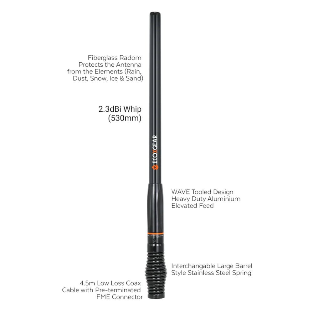 The ECOXGEAR Heavy Duty Radome Antenna is engineered for ultimate toughness and reliable performance in extreme off-road environments. Featuring a robust aluminium ferrule and a large barrel-style stainless steel spring, this antenna is designed to absorb shocks and vibrations, making it ideal for UTVs, ATVs, and other rugged vehicles.