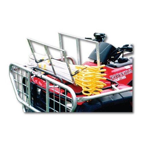 The steel Fence Carrier for ATVs is hot dip galvanised to prevent rust. It comes supplied with adjustable bungi cords and hooks to securely hold items, provision for reels to be hooked onto and held in place, plus a slot for a reel to be held in freewheel position.