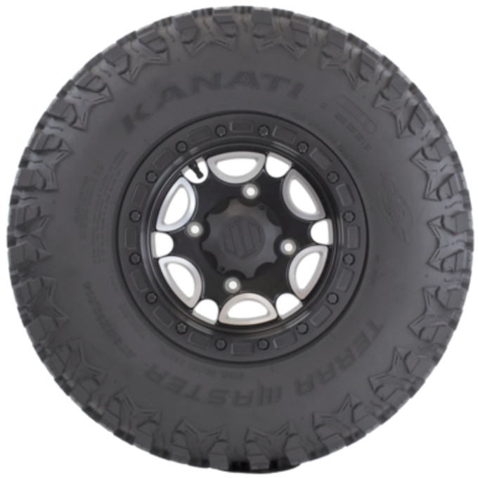 The Kanati Terra Master is the industry’s first UTV tyre with an asymmetrical non-directional tread pattern. It’s specially engineered tread pattern gives you the benefit of two tyres in one. With two distinctive sides to choose from, you can customise your tyre set up to your vehicle application and driving style. The Terra Master’s profile is optimised for forward traction and side bite and features a light-weight steel-belted radial carcass for a stronger core and greater wear resistance.