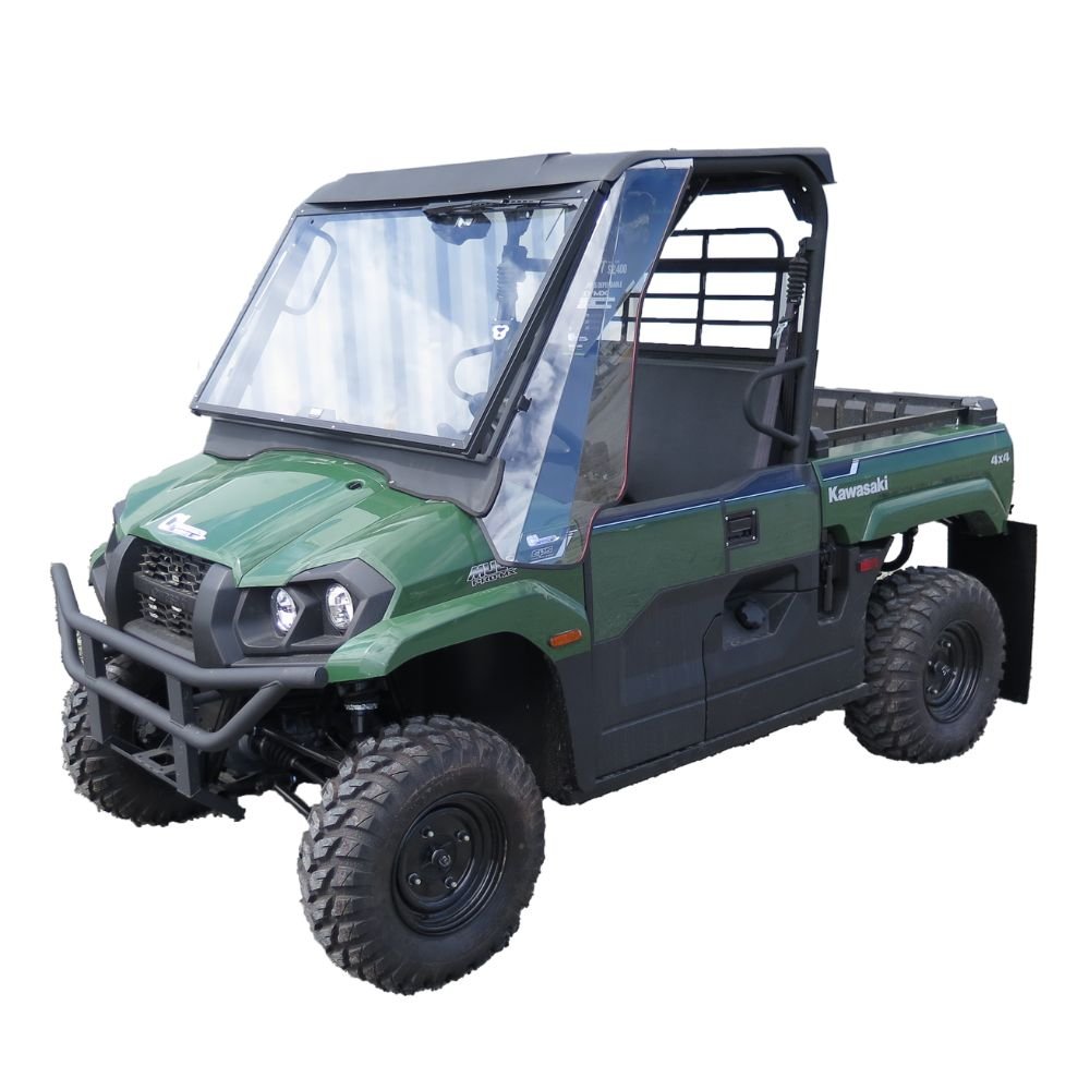 Improve your ride experience with this highly durable automotive-quality laminated Glass Hinging Windscreen Kit for Kawasaki Mule Pro-MX UTVs.