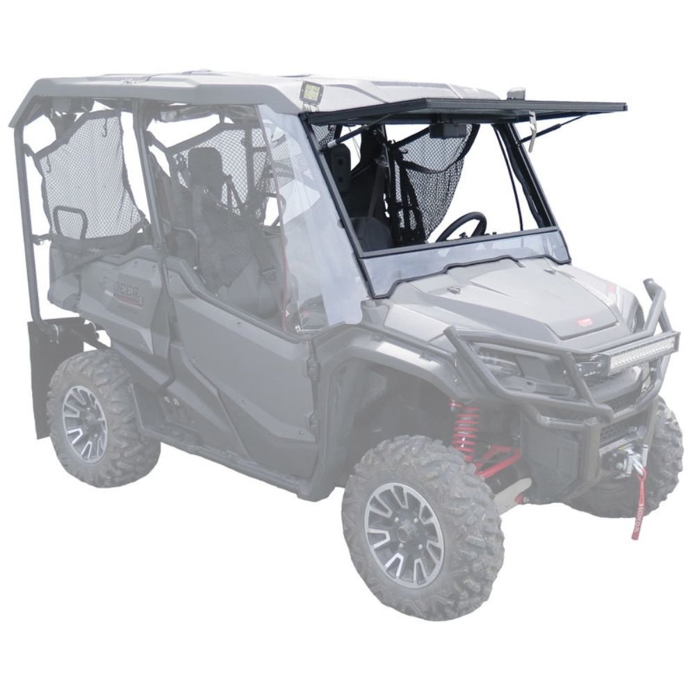 Improve your ride experience with this highly durable automotive-quality laminated Glass Hinging Windscreen & Wiper Kit for Honda Pioneer 1000 UTVs.