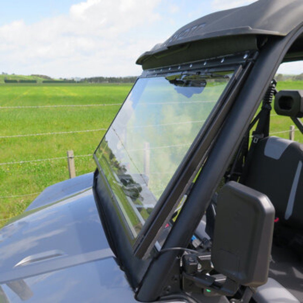 Equip your CFMoto UForce 600 with the TRAX Glass Hinging Windscreen & Wiper Kit, designed for riders who need comfort, flexibility, and all-weather visibility. Built from automotive-quality laminated glass, this premium windscreen offers crystal-clear strength and scratch resistance that outperforms plastic alternatives.