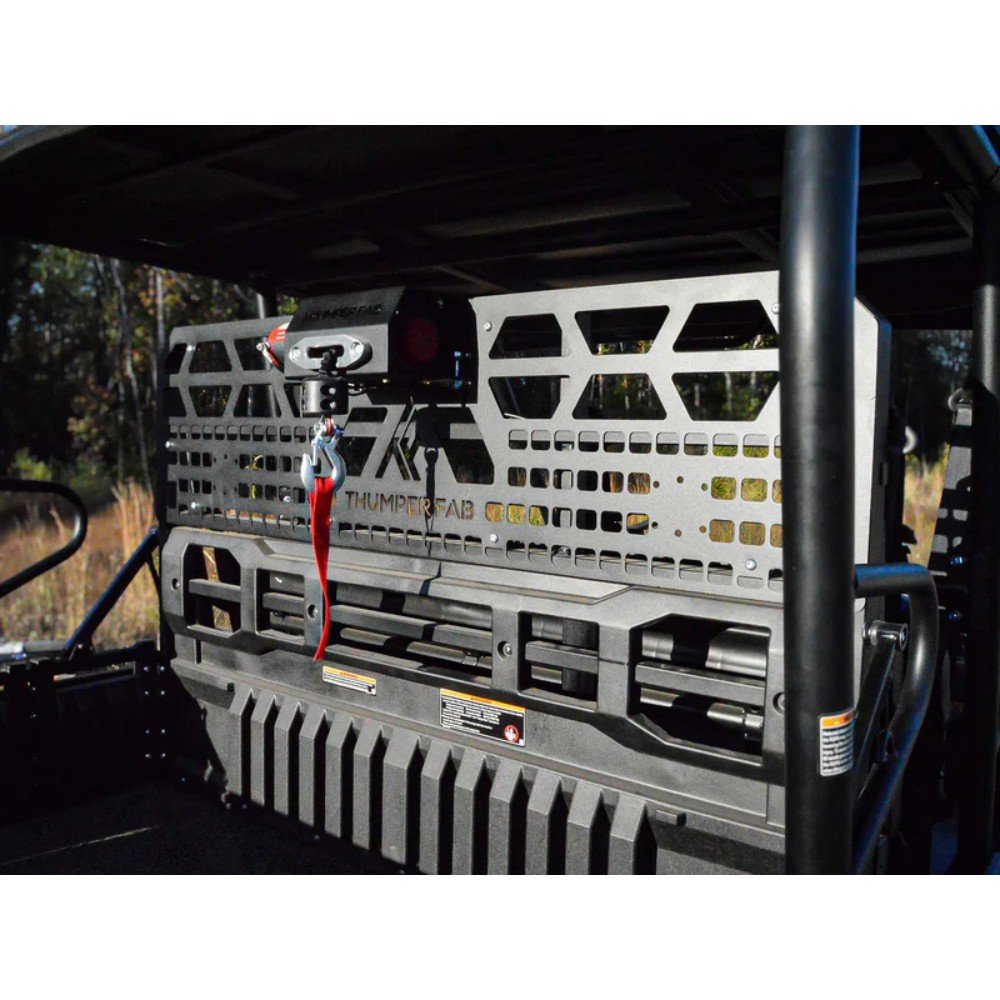 Crafted from heavy-duty American steel, the Thumper Fab headache rack is precision laser-cut and CNC-formed for maximum strength and a perfect fit. The integrated winch system gives you extra pulling capability when loading gear, securing cargo, or handling demanding tasks. With multiple tie-down points, accessory mounts, and a stylish black powder-coated finish, it delivers both rugged performance and a professional OEM-quality look.