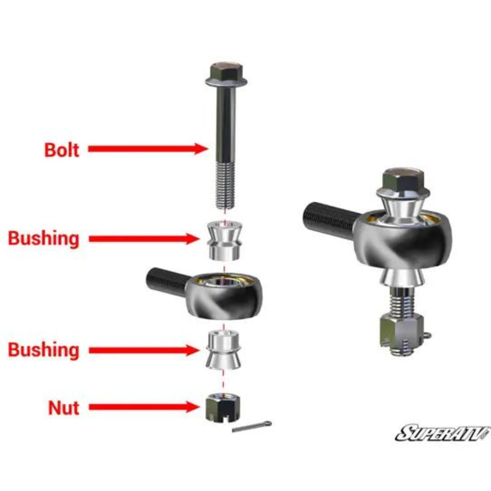 At SuperATV, they understand the need for bulletproof strength and unmatched durability. To ensure an exceptional product, they’ve increased the size of the tie rod ends, added misalignment bushings, and finished it with the optimal blend of materials and heat treating. Their high strength 4130 Chromoly end is oversized allowing for an increased bearing surface area, leaving you with all-out strength, durability and reliability.