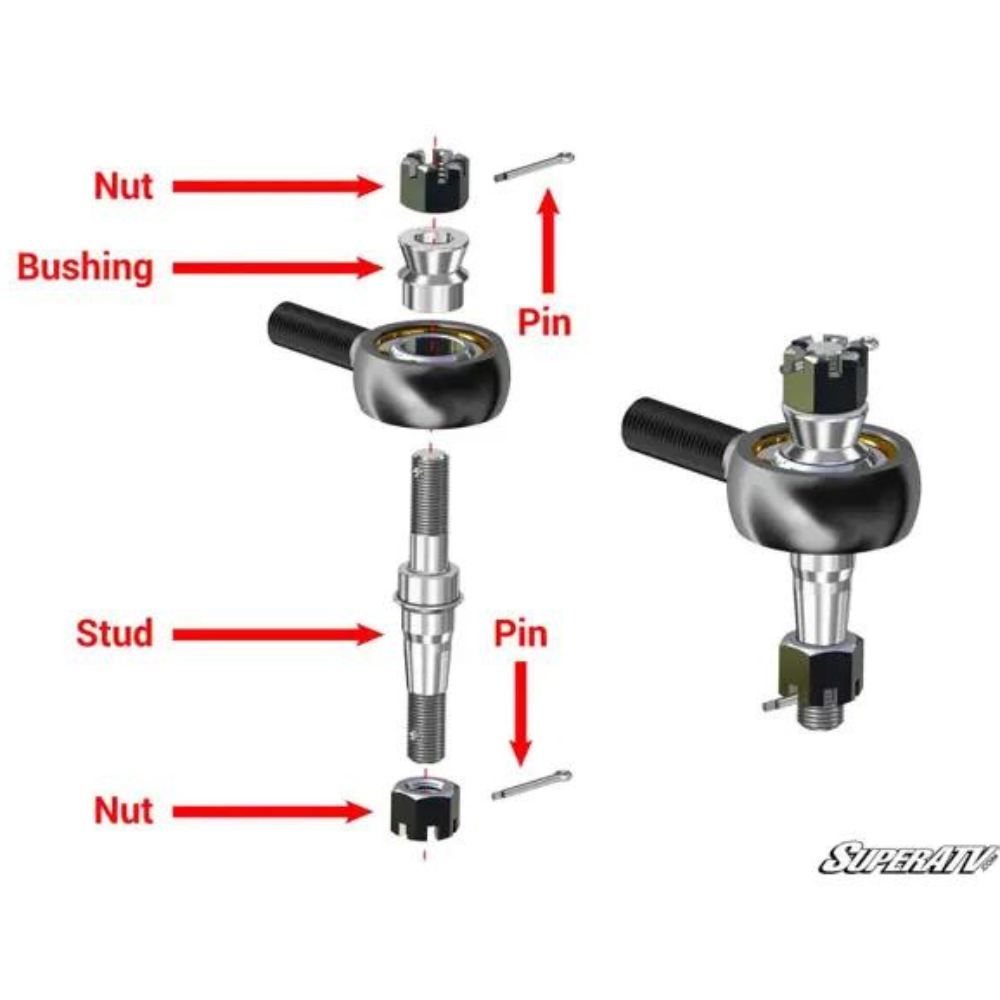 At SuperATV, we understand the need for bulletproof strength and unmatched durability. To ensure an exceptional product, we’ve increased the size of our tie rod ends, added misalignment bushings, and finished it with the optimal blend of materials and heat treating. Our high strength 4130 Chromoly end is oversized allowing for an increased bearing surface area, leaving you with all-out strength, durability and reliability.