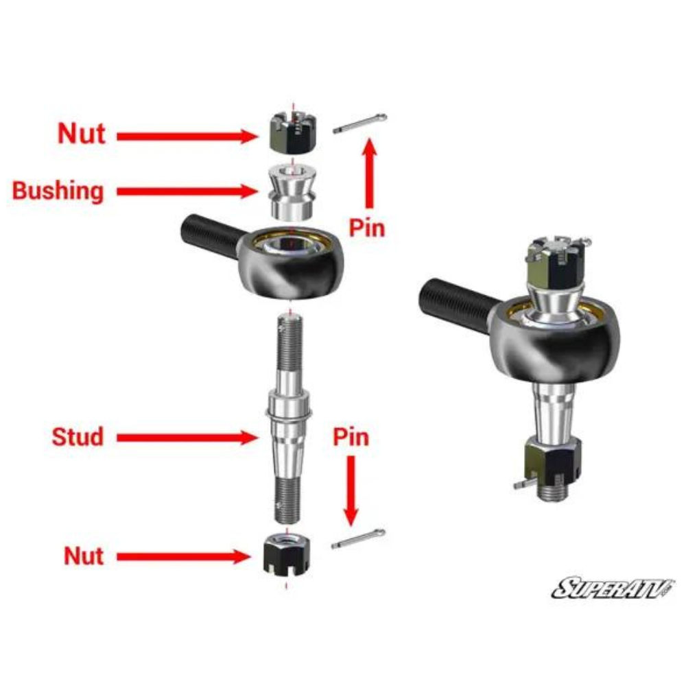 SuperATV understand the need for bulletproof strength and unmatched durability. To ensure an exceptional product, they’ve increased the size of the tie rod ends, added misalignment bushings, and finished it with the optimal blend of materials and heat treating. The high strength 4130 Chromoly end is oversized allowing for an increased bearing surface area, leaving you with all-out strength, durability and reliability.