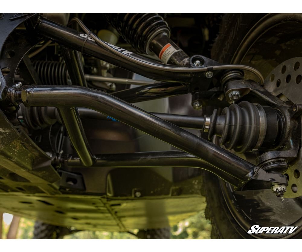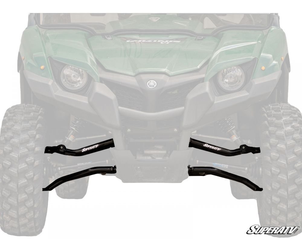You want bigger tyres to tackle bigger obstacles, but you don’t want a lift that’s hard to handle and makes you feel unstable. You need SuperATV’s High-Clearance 1.5″ Forward Offset A-Arms for your Yamaha Viking. They increase your wheelbase by 1.5 inches, so you get more stability, room for up to 28″ tyres, and more strength than stock. It will make your ride better.