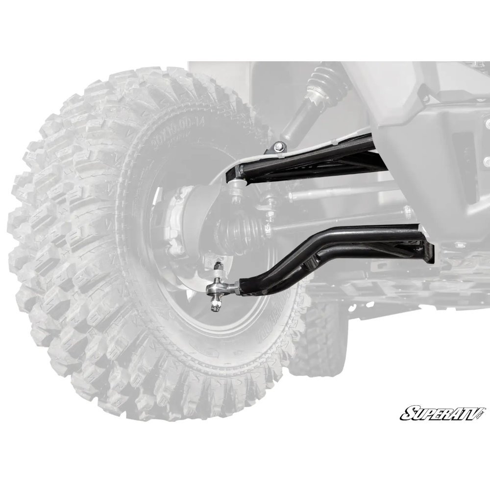 The 38 mm (1.5″) forward offset gives you better tyre clearance and room for up to 30″ tyres—all without a lift! A longer wheelbase also makes you more stable over hills and large obstacles. They make use of SuperATV’s unique dual-bend design to raise the profile of these arms so they won’t get hung up on rocks and other trail obstacles.