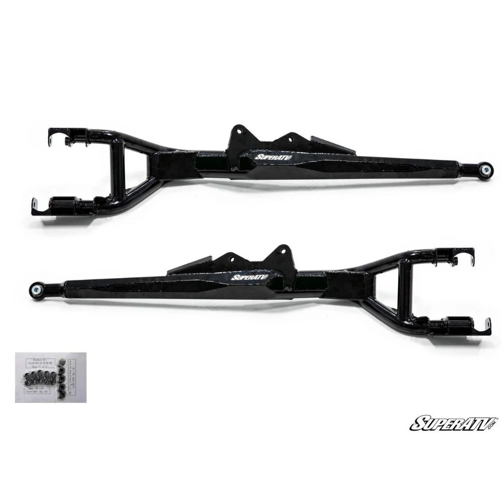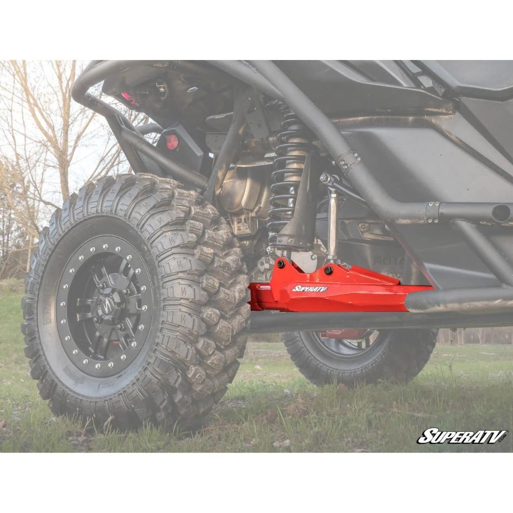 SuperATV’s Rear High Clearance Trailing Arms for the Can-Am Maverick X3 allow your X3 to do more. They give you 3″ of clearance over stock trailing arms so you can cruise over bigger obstacles without getting hung up. We make them with ⅛” heavy-duty steel internal gussets and 1-½” x ⅛” wall steel DOM tubing and external gusseting. SuperATV made these trailing arms as strong as possible and gave them a Lifetime Warranty! That means you can worry about having fun and not worry about your suspension.