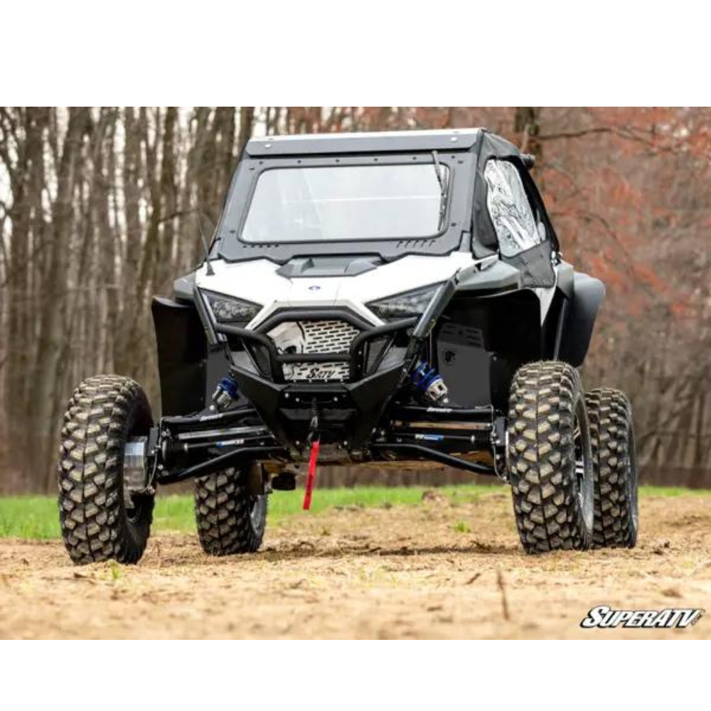 By installing SuperATV’s Inner Fender Guards to your Polaris RZR Pro R, you protect your wheel wells and your passengers. Made of heavy-duty 3.175 mm (⅛”) Aluminium plating Over 5 times stronger than your factory firewall Bolts directly to your frame Compatible with all SuperATV A-Arms Does not affect tyre size UV-resistant powder coating for long-lasting durability