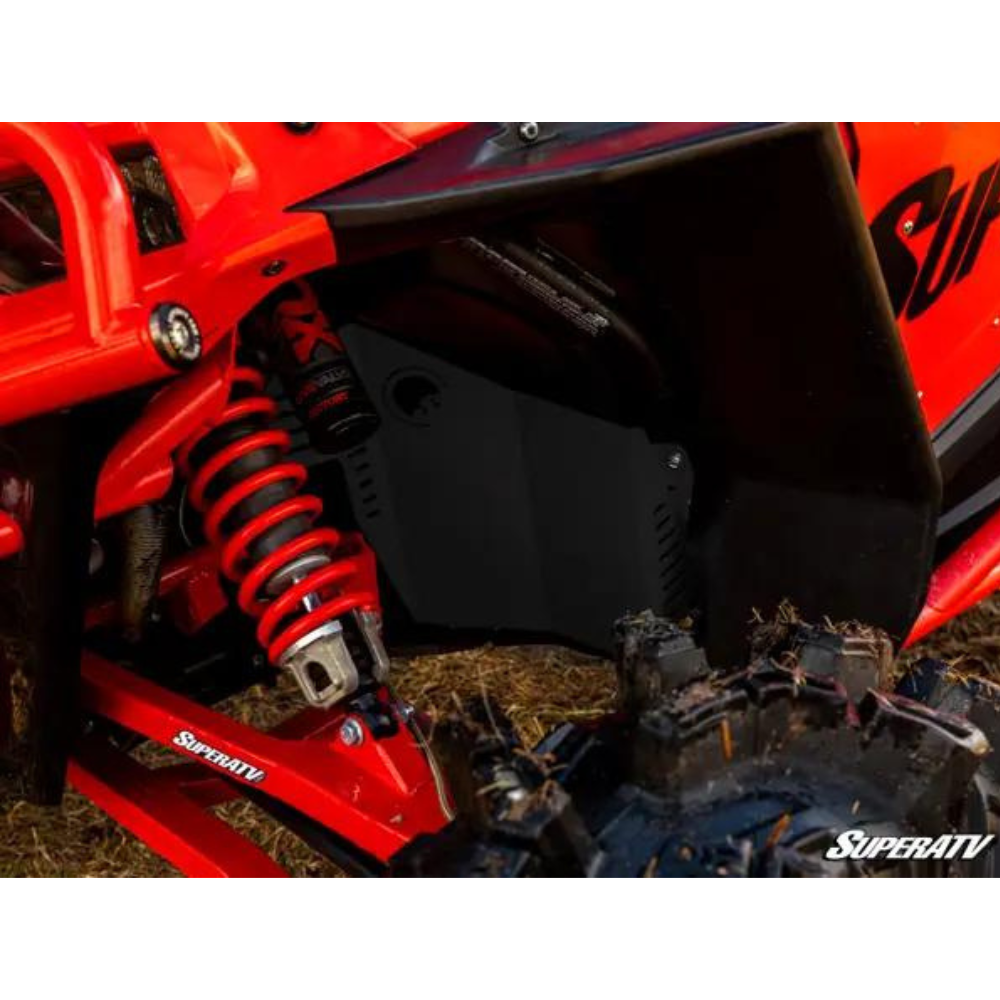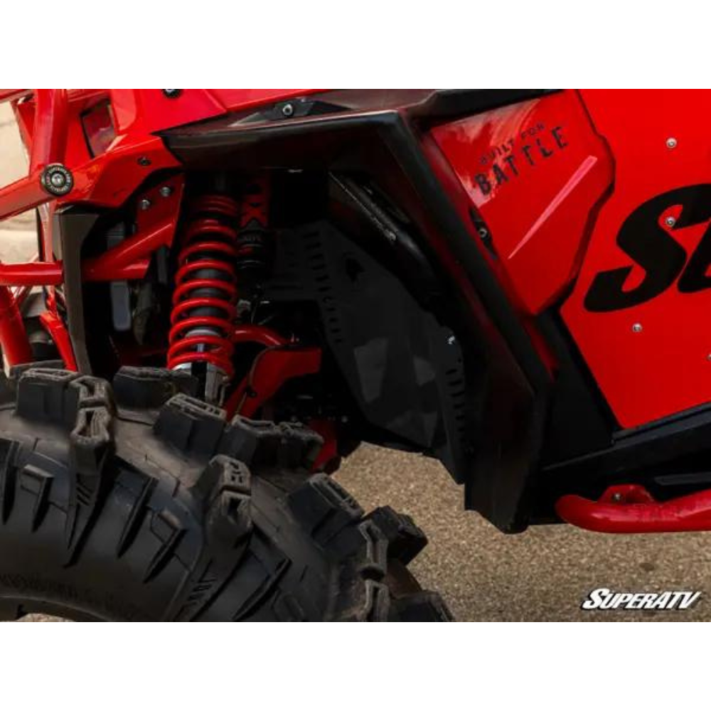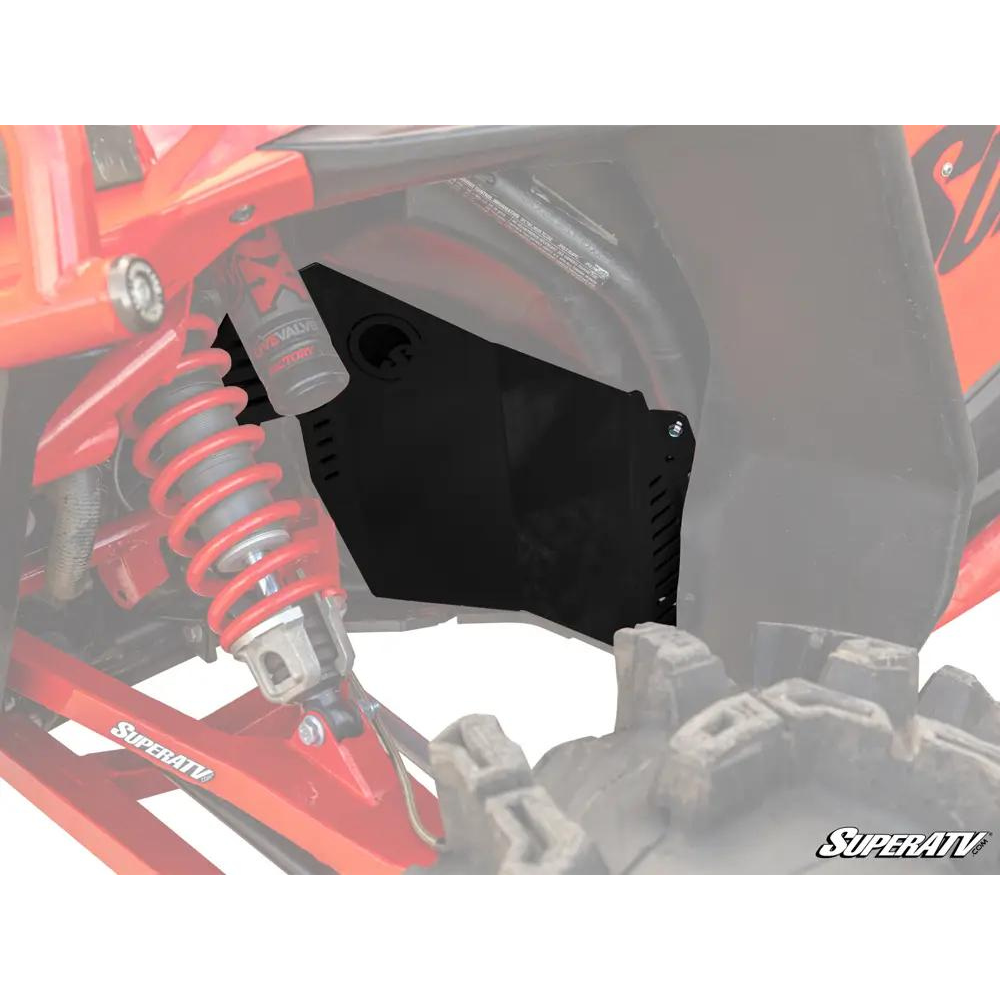 When you keep the pedal floored on your RZR XP 1000, your tyres kick up tons of branches and rocks that should bounce off your wheel well. But if you pick up a stick just right, it can stab right through your firewall and stab you in the leg. Get SuperATV’s Inner Fender Guards to reinforce your front wheel wells and keep yourself safe.
