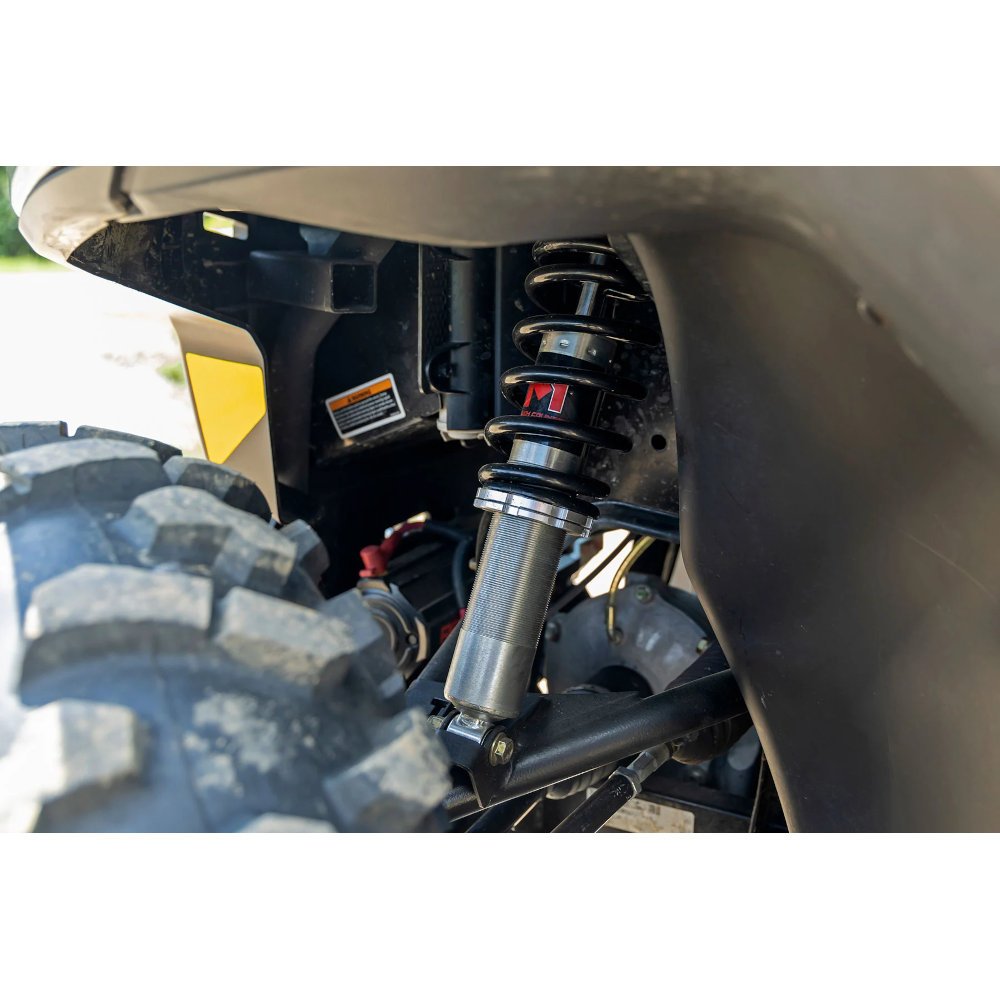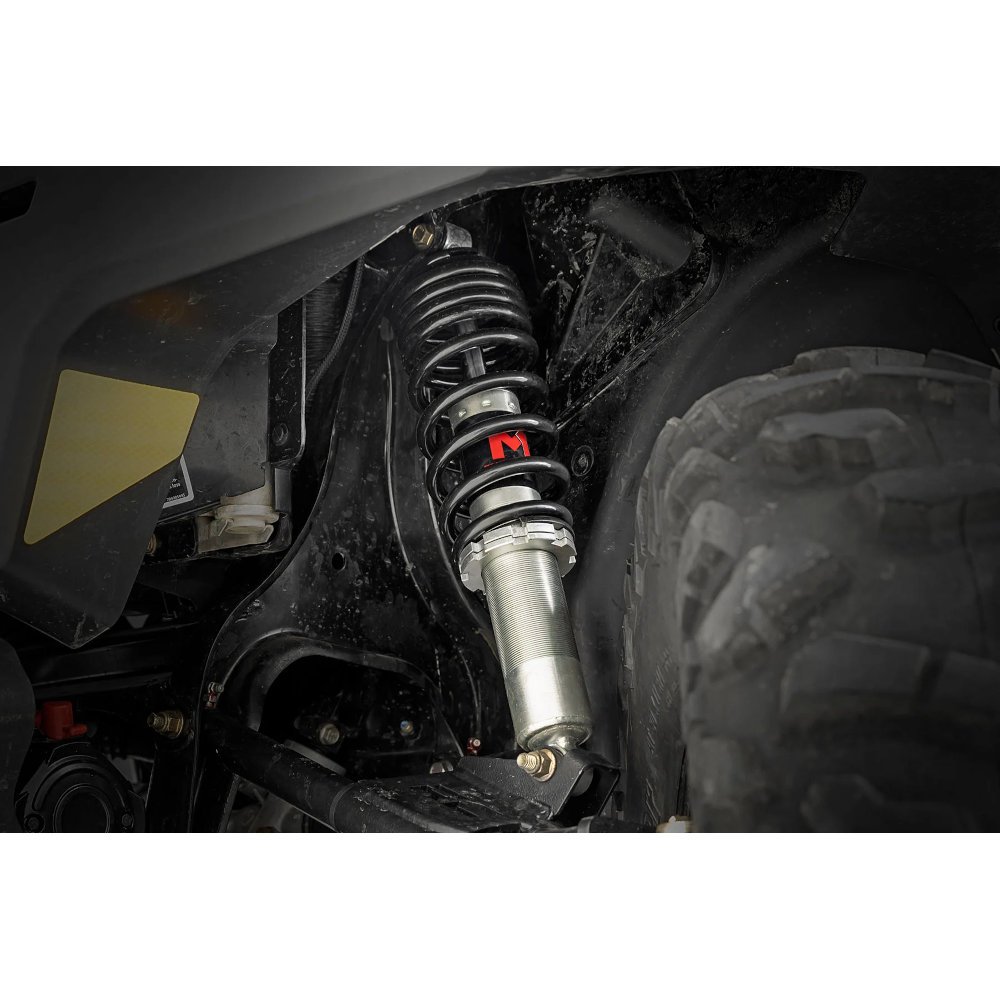 Rough Country’s M1 Coilovers have been engineered to give you the most reliable performance, increased driving comfort, and all-around performance for your UTV. Made from 50.8 mm (2″) seamless extruded tubing and feature durable vulcanised natural rubber bushings. They’re also zinc plated for resistance against the elements. Plus, they’re adjustable in height. Utilising multiple grooves in the shock body the spring perch can be raised or lowered to achieve additional height or simply function as a stock height replacement. Whether you’re looking to add a little extra clearance for off-roading or just want your ride to sit a little higher, Rough Country’s M1 Coilovers are the perfect solution.