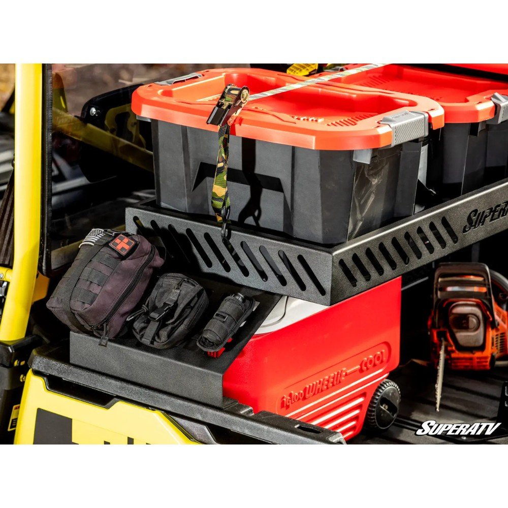 The Can-Am Defender already boasts impressive cargo capacity, but when you need more space for tools, camping gear, or supplies, SuperATV’s Defender Bed Rack Delta delivers. This smartly designed rack mounts above the bed, giving you an extra shelf without sacrificing the usable space below—perfect for coolers, jerry cans, or tents. It increases your storage area by 45% and features slotted sides and a base ideal for securing all your gear with straps or bungees.