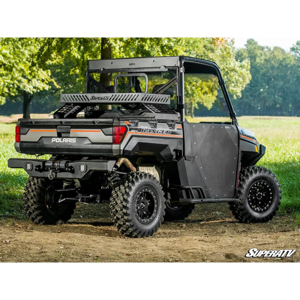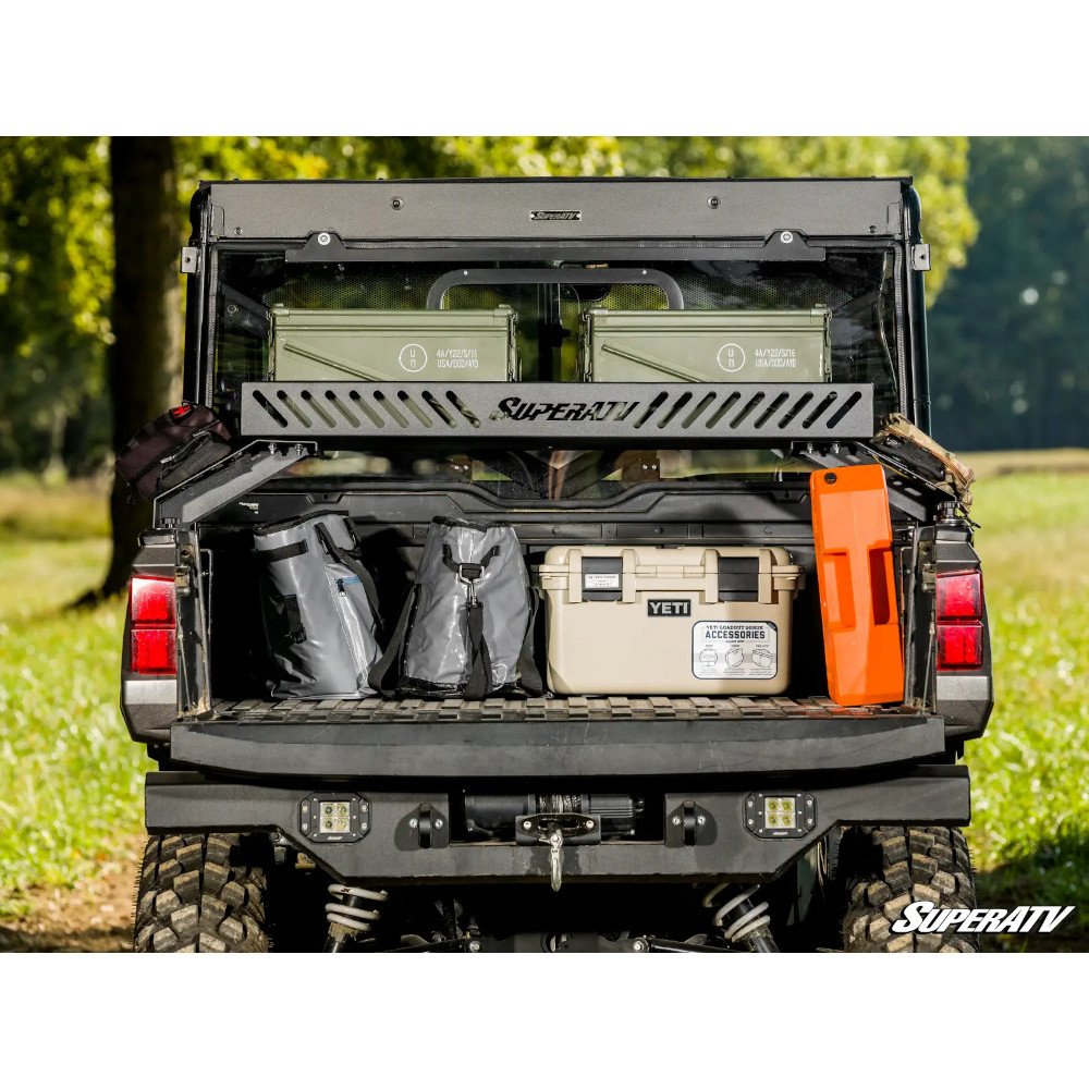 SuperATV’s Bed Rack Delta is the ultimate cargo solution for the Polaris Ranger, designed for riders who’ve outgrown their stock bed space. Sitting conveniently above the bed, this over-bed shelf dramatically increases storage capacity, offering plenty of room underneath for essentials like a cooler, tent, or Jerry can—while the rack itself adds extra carrying space where it counts.