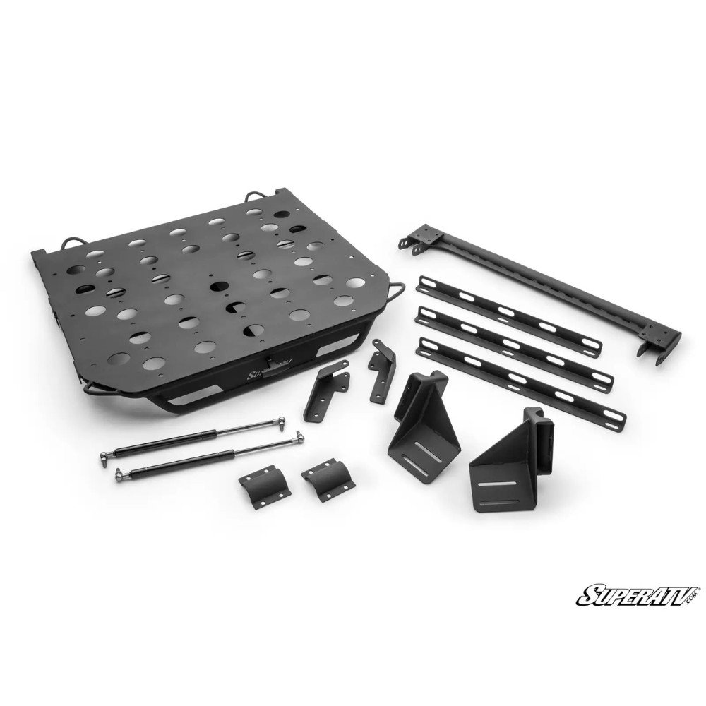 The Polaris RZR Pro R is a beast on the tracks, but it’s not exactly known for its storage space. That’s where SuperATV’s Cargo Rack Alpha steps in—designed to give riders the room they need for a 38″ spare tyre, cargo box, camping gear, and more. It mounts securely to the bed, boosting carrying capacity without compromising functionality.