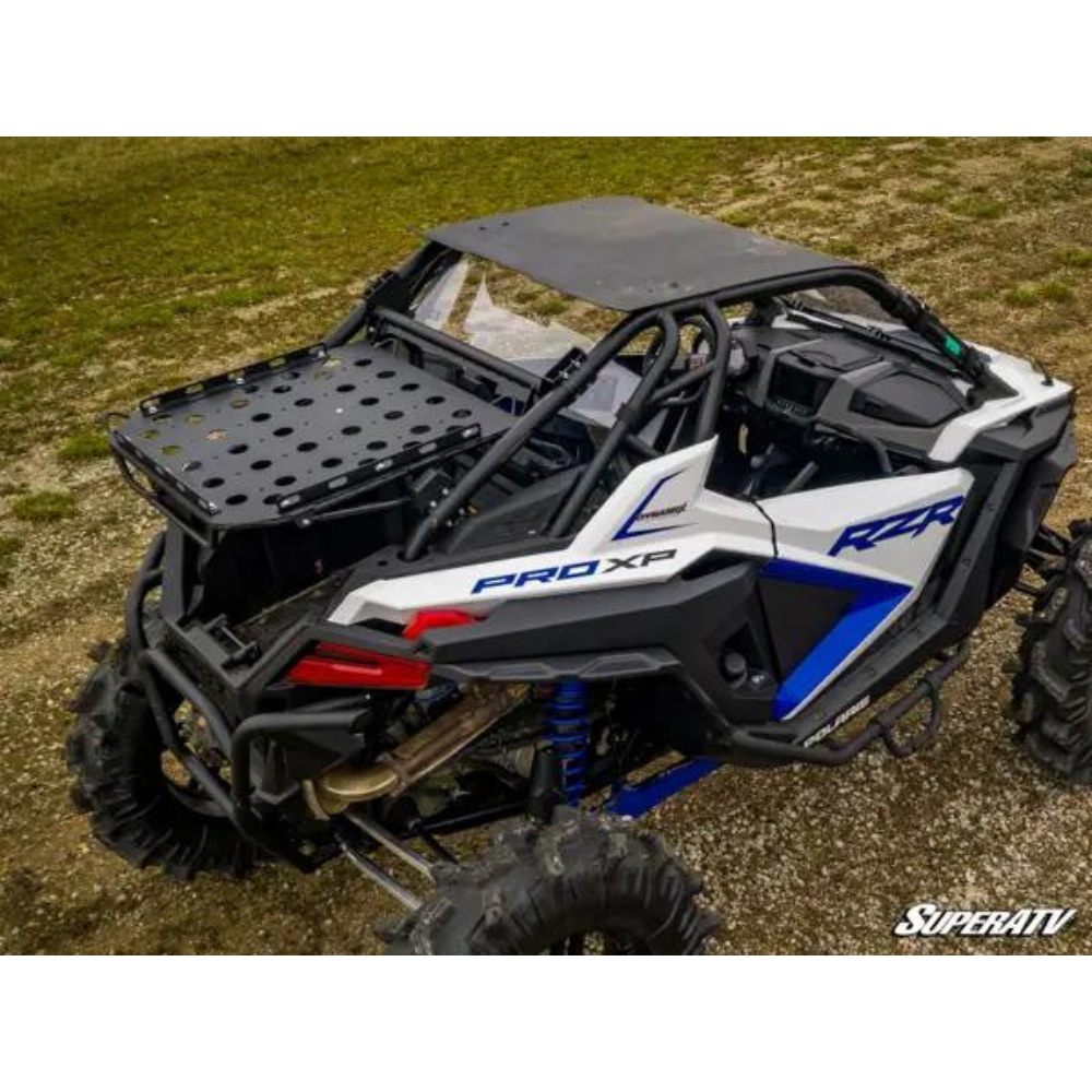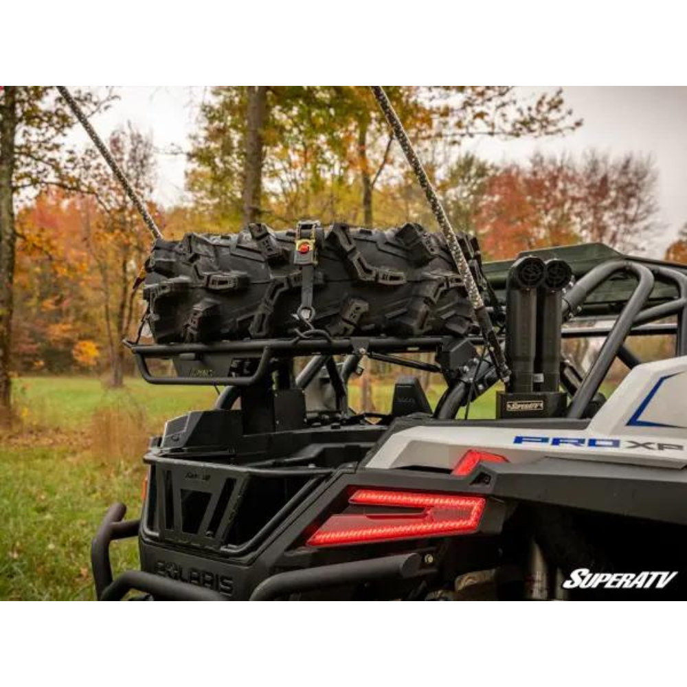 SuperATV, is all about smart storage solutions designed to make your UTV ride better and your life easier. Exhibit A is the Cargo Rack Alpha for the Polaris RZR PRO XP. It attaches to your frame using heavy-duty clamps and, unlike other UTV cargo racks, it’s not stationary once installed. This rack utilises gas struts that let you raise and lower it with the turn of a handle so no matter what you’re hauling — even something as big as a spare tyre — you’ve got easy access to the bed below.