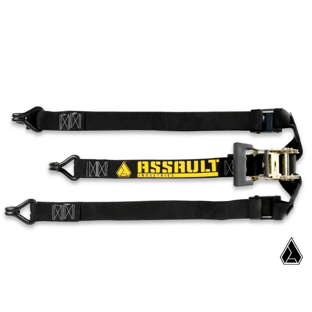 Built tough with high-grade steel and finished in a durable black powder coat, the Adventure Rack is made to withstand harsh off-road conditions. It supports up to 25.8 kg (57 pounds) of gear and includes multiple tie-down points plus an Assault Industries Y-strap to secure a spare tyre right out of the box—no additional gear needed.