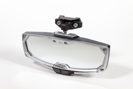 The Seizmik Halo-RA LED Rearview Mirror features multimodal, high intensity RGB LEDs and a high intensity COB (Circuit On Board) LED map light along with a powder coated cast aluminium bezel and an ABS rear housing. The result is a strong, lightweight, and durable mirror with a convenient hands-free cab light.