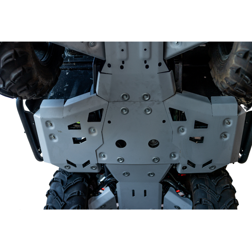 Do you take your CFMoto CForce 600 through rugged trails, rocky terrains, or dense woods? If you’re concerned about sticks, rocks, or brush damaging vital parts of your ATV, such as the radiator, oil pipes, or engine cases, we have the perfect solution for you. Rival’s Skid Plate Kit is designed to protect your vehicle from these hazards!