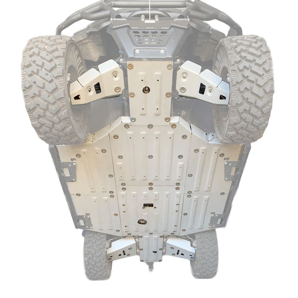 Do you ride your CFMoto UForce 600 through off-road trail conditions in the rock or the woods? If you worry about sticks, rocks, or brush hitting valuable parts of your UTV like a radiator or oil pipes or engine cases we have the solution for you. Rival’s Skid Plate Kit is for you! Made from 4 mm Marine Grade Aluminium, which has a very high tear rating which puts the Rival Skid Plates & CV Guard kits in a league of their own!