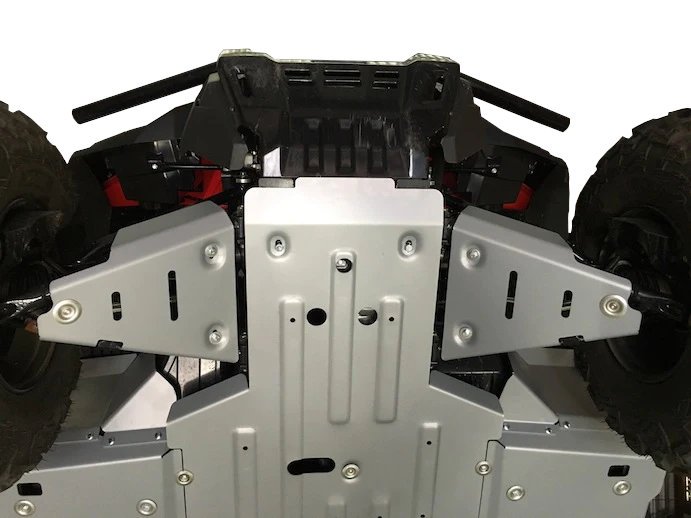 Made from 4 mm Marine Grade Aluminium, Rival Skid Plates boast a high tear rating, ensuring exceptional durability and strength. The deep stamped recesses and reinforced metal brackets add extra resilience, while the drainage and maintenance holes make cleaning and servicing a breeze. Precision laser cut for an impeccable fit and finished with Italian AkzoNobel powder coat, these Skid Plates not only protect but also enhance the look of your UTV.