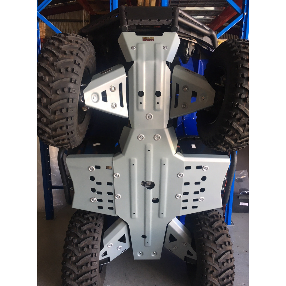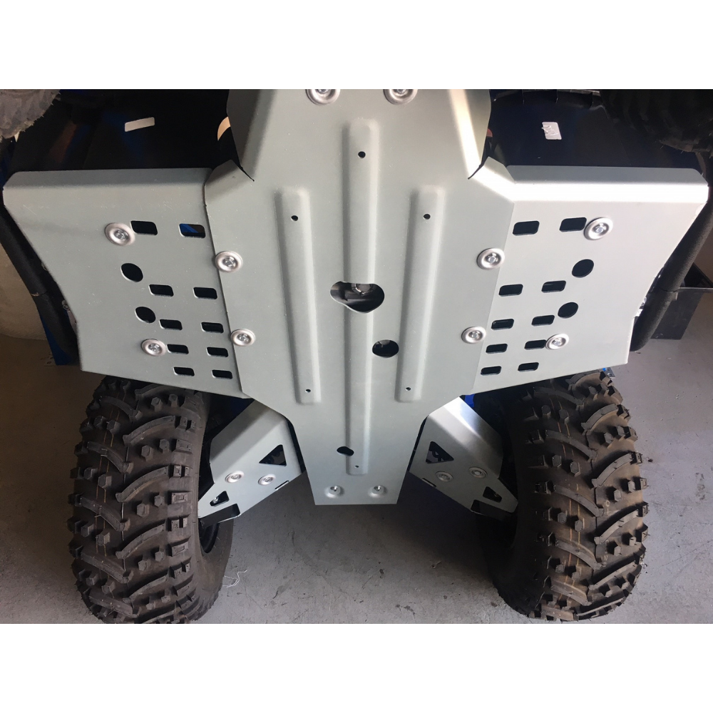 One of the only ATV Skid Plates of their kind that protects the entire foot well, including in front of the rider’s feet. This kit is suited to a Yamaha Kodiak 450 vehicles and includes Front and Rear CV Guards as well as the Under Body Plate, to ensure all the valuable parts of your ATV are protected.