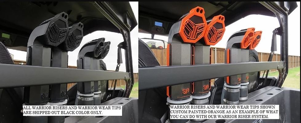 SYA Warrior Riser Snorkel Kits come standard with removable Warrior Wear tips that snap in easily and unsnap easily for cleaning. Although they are not required to use with the Warrior Riser, you will have them if and when you need them. They are easily cleaned and reusable and durable for long time use. The water repellant material is from Outerwears. Your Warrior Wear will come unglued so you have the option of custom painting your parts to match your machine. Easily glued with loctite stick’n seal glue. You may choose to glue them together with the water repellent pre filter material, or to glue together without, your choice. The CVT outlet should not have the water repellent material in place. The instructions with your kit contain all information on your Warrior Wear tips.