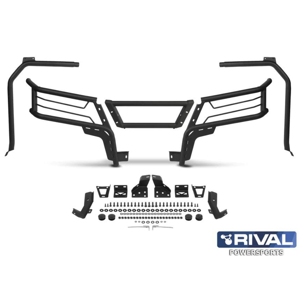 Kit includes front bumper, front fender guard, rock sliders Strong mounting Made from Heavy Duty 1.65″ and 1.25″ steel tubing Protects the front of your machine and your headlights and the side of your machine Comes with all mounting hardware and fitting instructions Easy installation Pair it with a Rival Rear Bumper