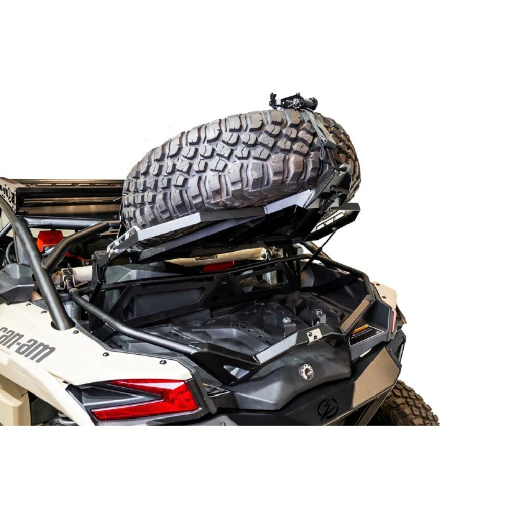 Carry your spare tyre securely without sacrificing cargo access with the Elektric Offroad Volt Tyre Rack with Gas Struts for Can-Am Maverick X3 (2017–2024+). Designed specifically for the Maverick X3 platform, this heavy-duty tyre rack provides a practical and durable solution for mounting a spare wheel while maintaining easy access to the rear cargo area.