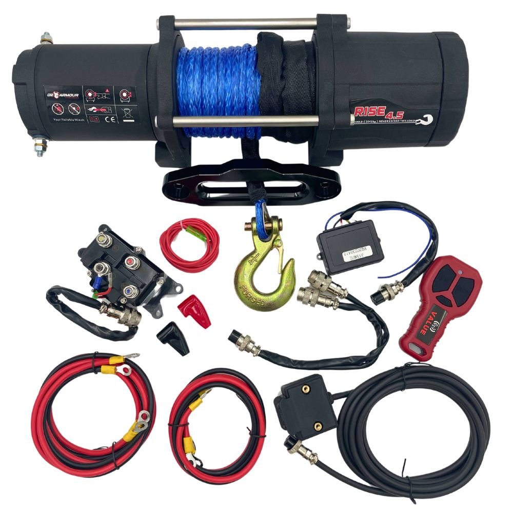 The OZ Armour 4500 lb Synthetic Rope Winch is your go-to solution for off-road adventures, designed specifically for UTV enthusiasts. Built tough and packed with advanced features, this winch ensures you’re always ready to tackle Australia’s rugged terrain and demanding recovery situations.