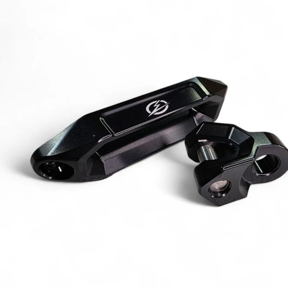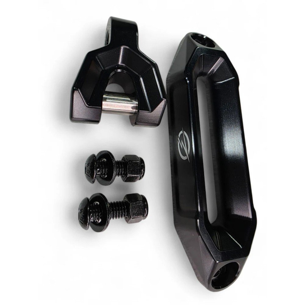 The Elektric Offroad Designs Winch Fairlead and Hook fits all standard UTV winch bumpers. The heavy-duty billet aluminium fairlead is designed for synthetic rope winches and includes a tow hook to handle any recovery situation you may encounter. The combo hook and fairlead features a simple bolt-on installation with supplied hardware.